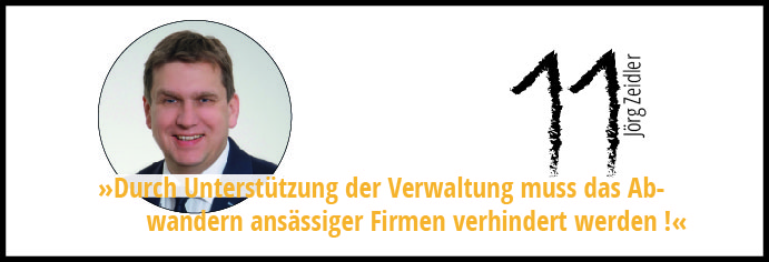 · Der Erhalt ansässiger Firmen muss an erster Stelle stehen, denn Neuansiedlungen sind zur Zeit eher unrealistisch