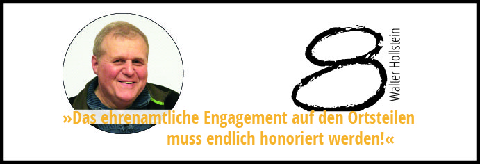 · Das ausgezeichnete ehrenamtliche Engagement auf den Ortsteilen muss endlich honoriert werden